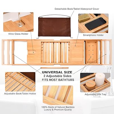 Teak Bathtub Caddy With Reading Rack Book : Amazon Com Utoplike Teak Bathtub Caddy Tray Bath Tray For Tub Unique Bathtub Organizer With Book Tablet Wine Glass Cup Towel Holder Adjustable For Your Loved Home Kitchen - This bamboo bathtub caddy is a luxury product.